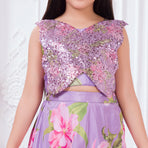 Add a touch of sparkle to festive celebrations with this elegant Tiny Kingdom lehenga set. Designed with a shimmering sequin crop top and a soft purple floral printed lehenga, t...
