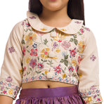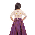 • Tiny Kingdom Ivory Embroidered Top with Purple Lehenga Skirt for Girls