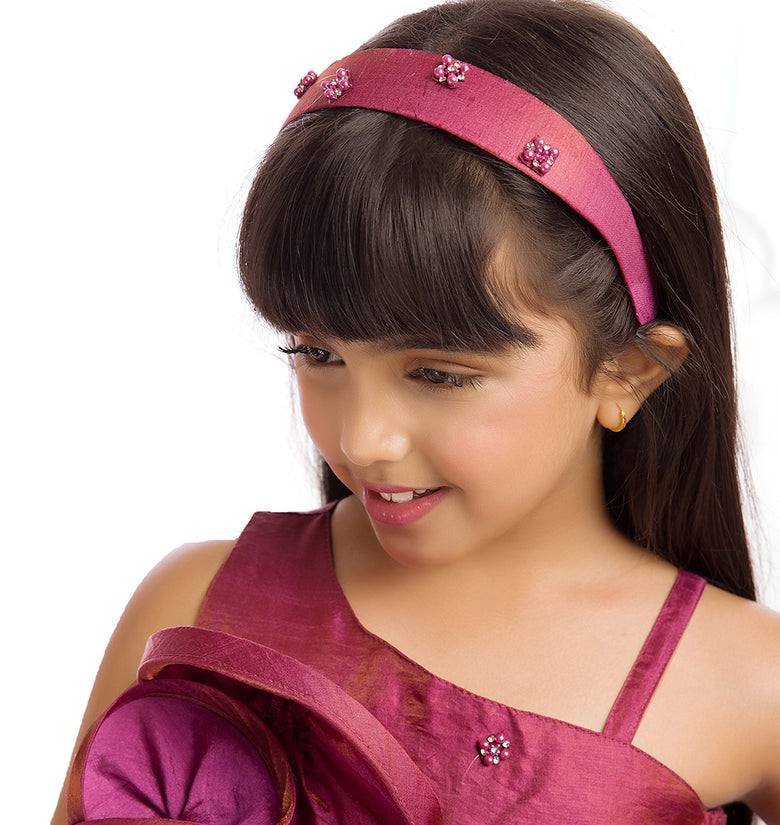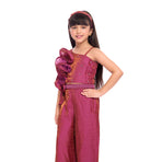 Add festive elegance to your child’s wardrobe with this beautifully designed Tiny Kingdom magenta co-ord set. Featuring a refined ruffle-detailed top paired with matching palazzo pants, this outfit offers a perfect mix of comfort and celebration-ready style. Crafted with soft, lightweight fabric, it ensures easy movement and all-day comfort for kids during special occasions.
