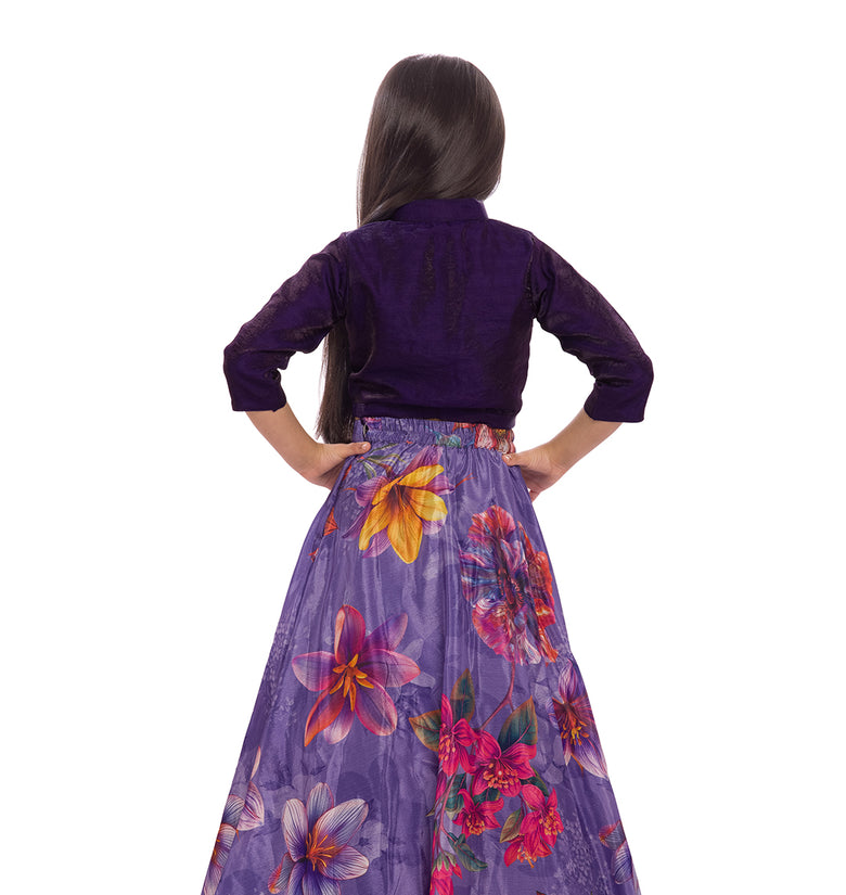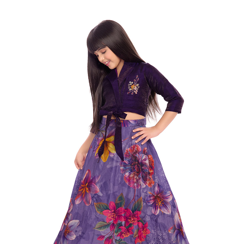 • Tiny Kingdom Purple Embroidered Top & Floral Skirt Set for Girls