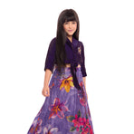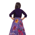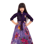 Tiny Kingdom Purple Embroidered Top & Floral Skirt Set for Girls