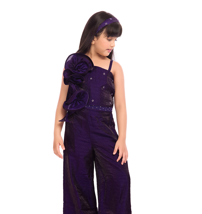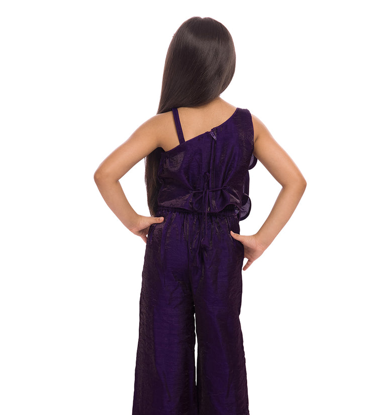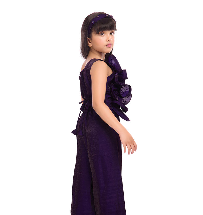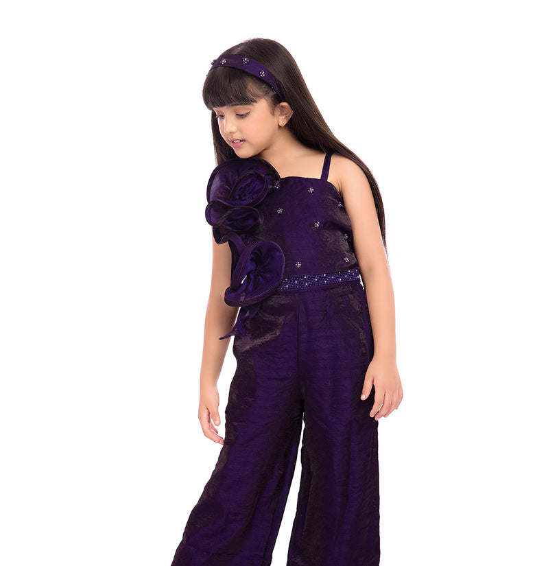 Add a royal festive touch to your child’s wardrobe with this elegant Tiny Kingdom purple co-ord set. Designed with a beautifully layered ruffle top and coordinated palazzo pants, this outfit brings together graceful detailing and everyday comfort. The rich purple shade and subtle embellishments make it a perfect choice for celebrations and special occasions.