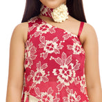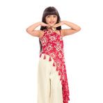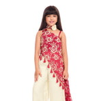 • Tiny Kingdom Red Floral Top & Ivory Palazzo Set for Girls